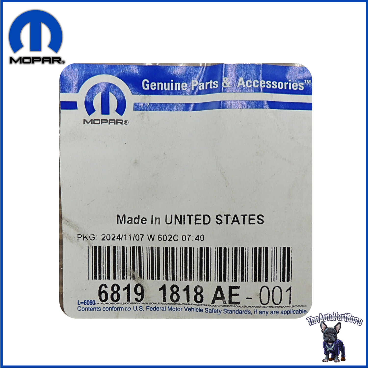GENUINE MOPAR PART # 68191818AE