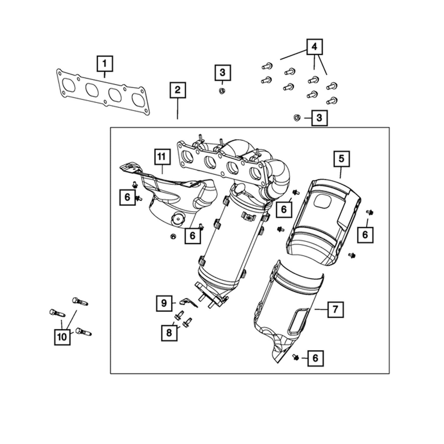 Exhaust And Catalytic Converter Manifold OEM Mopar 68432342AA is backordered and will ship as soon as it is back in stock.